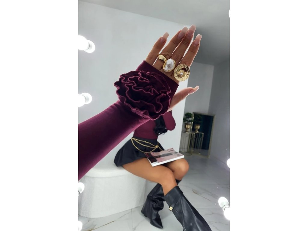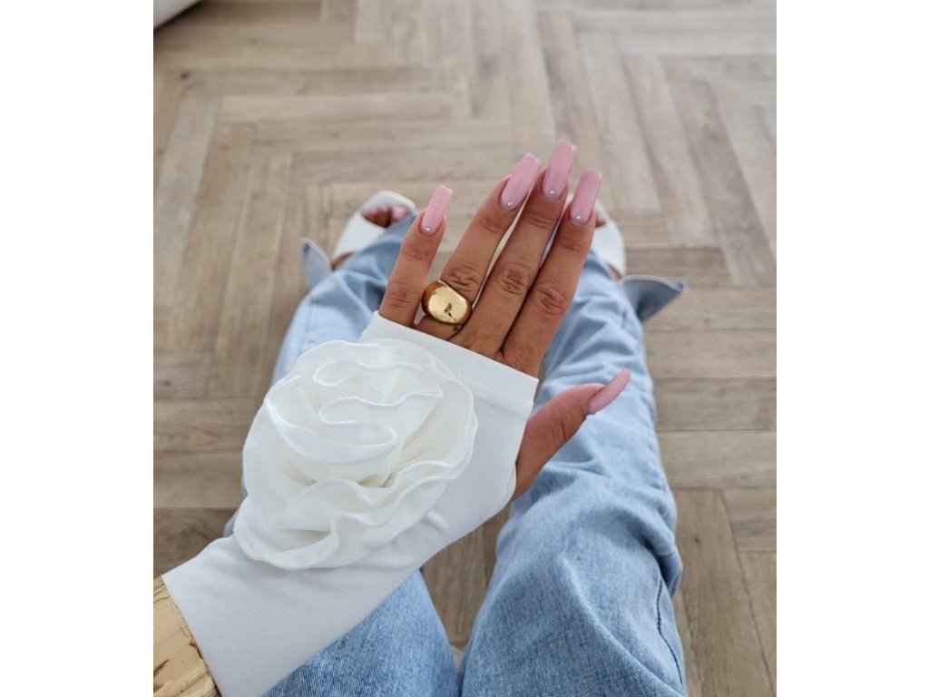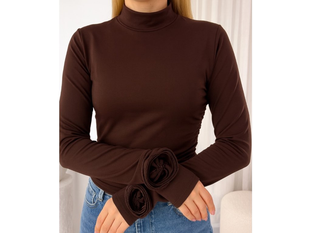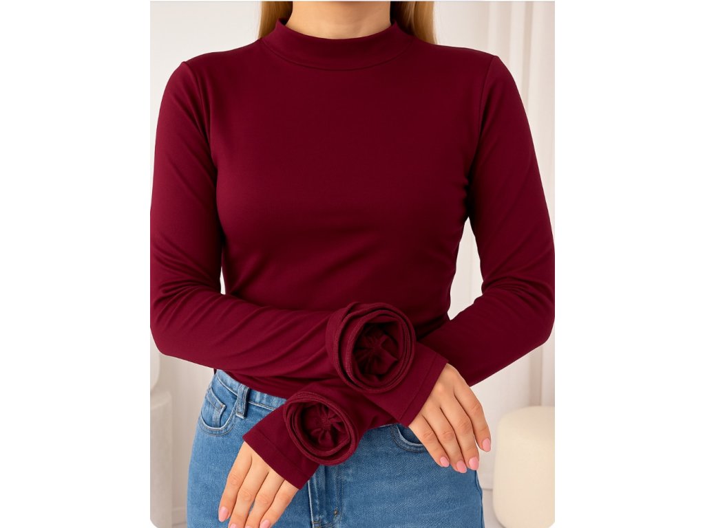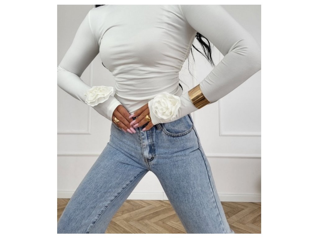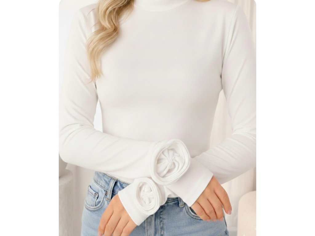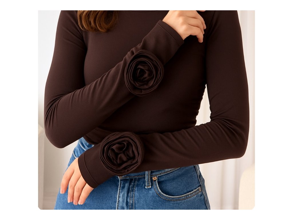 Top s dlouhým rukávem zdobený květem je skvělá kombinace klasiky a efektním detailem.