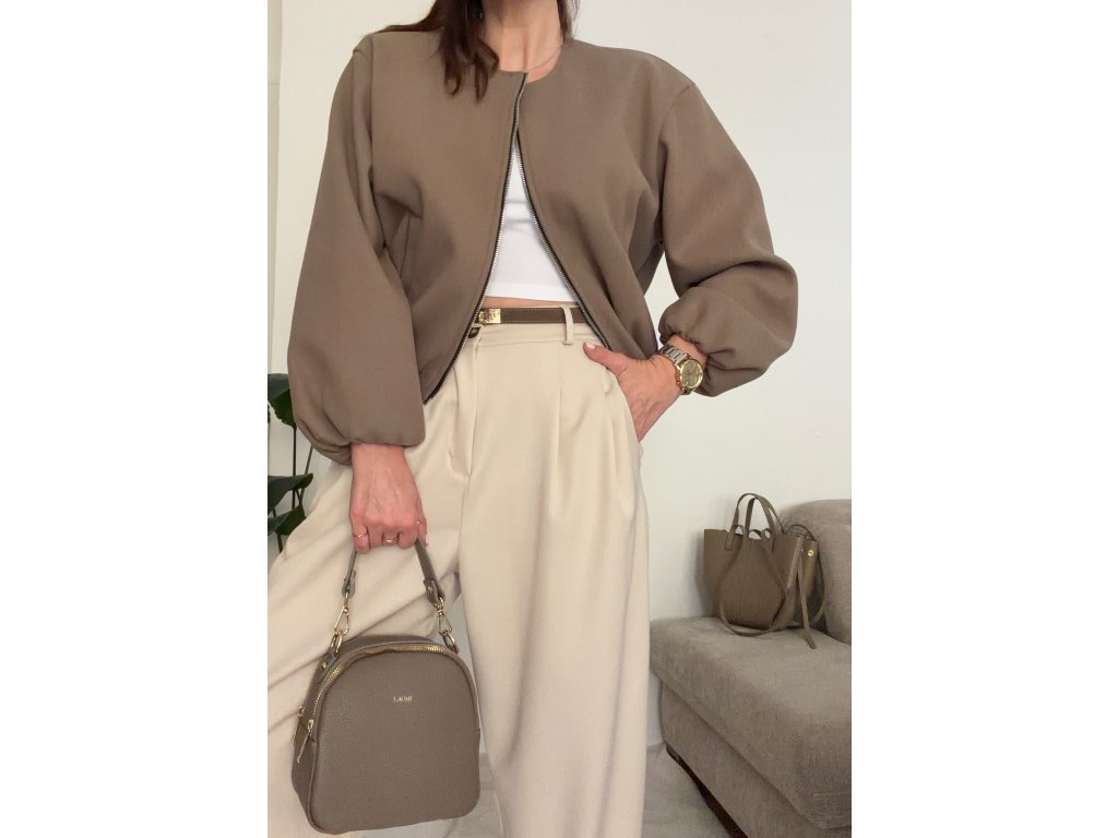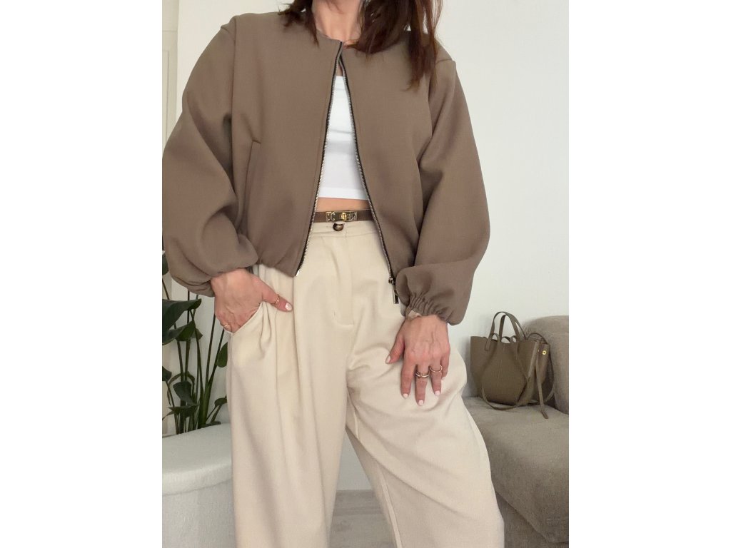 Stylová bombera v nadčasové béžové barvě je perfektní volbou pro přechodné období i chladnější dny. Díky jednoduchému střihu bez límce působí velmi čistě a elegantně, takže ho snadno zkombinuješ s džínami, kalhotami i šaty.