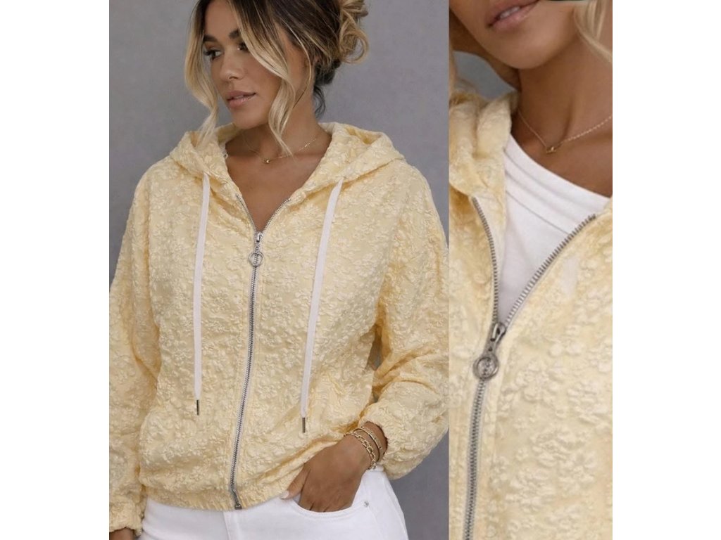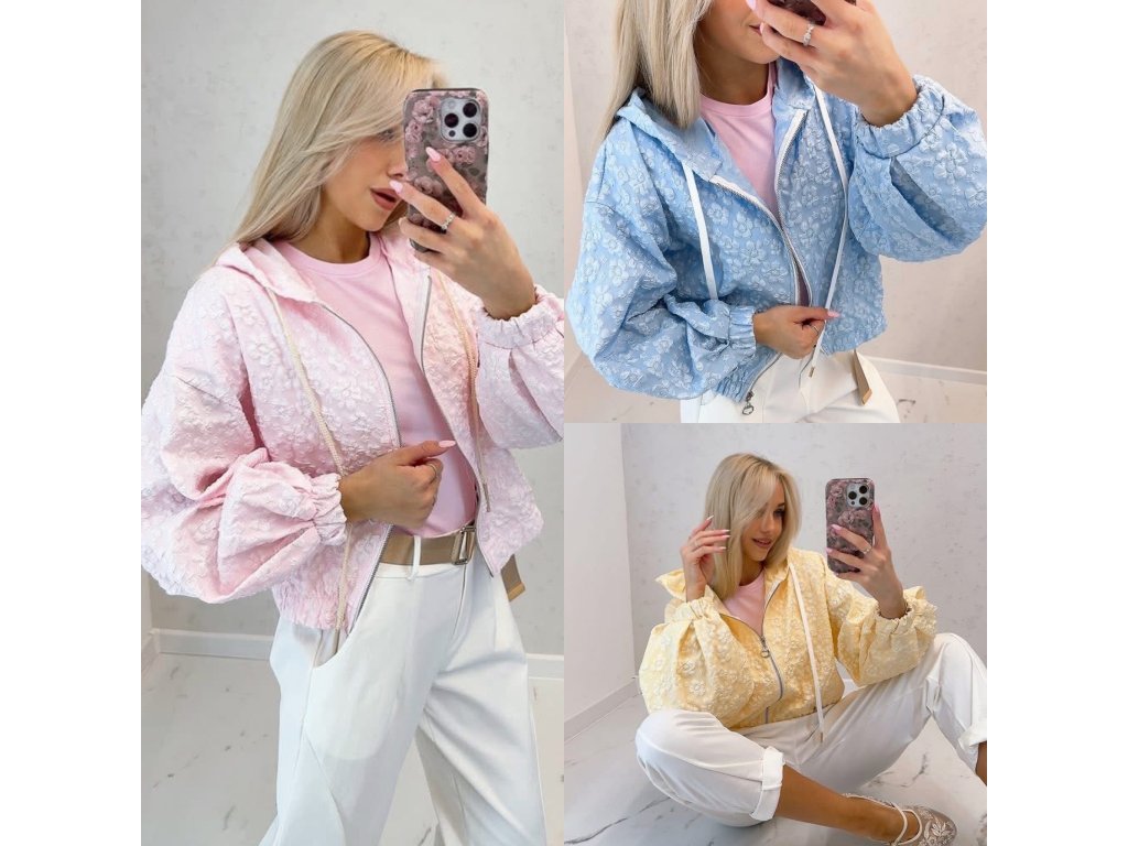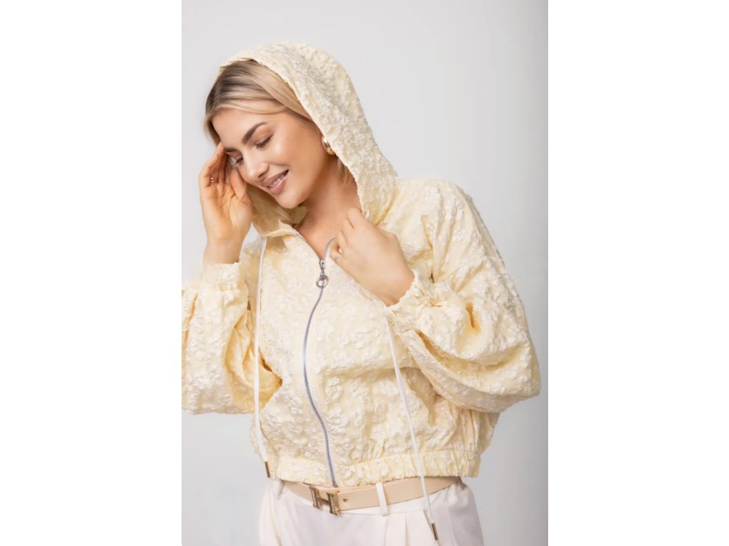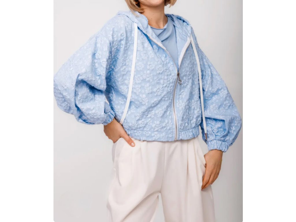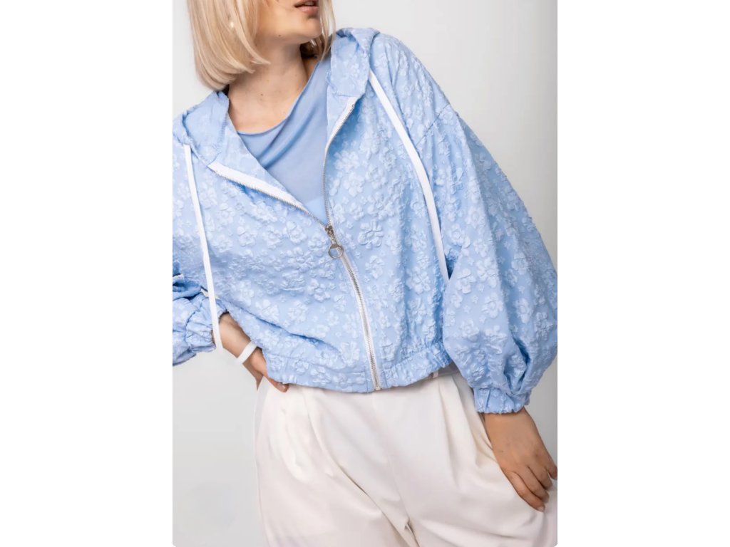 Stylová bomber bunda s kapucí, která na první pohled zaujme výrazným plastickým vzorem. Díky moderním balónovým rukávům a pružnému zakončení v pase i na rukávech skvěle drží tvar a lichotí postavě. Stříbrný zip dodává bundě moderní nádech a lehký materiál zajišťuje pohodlí i příjemnou vzdušnost při nošení.