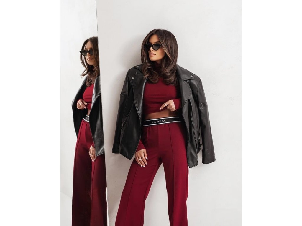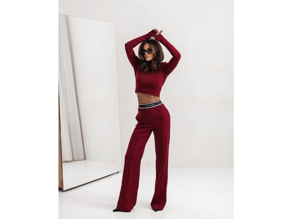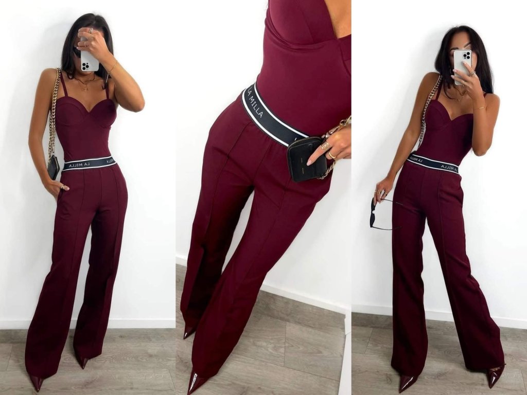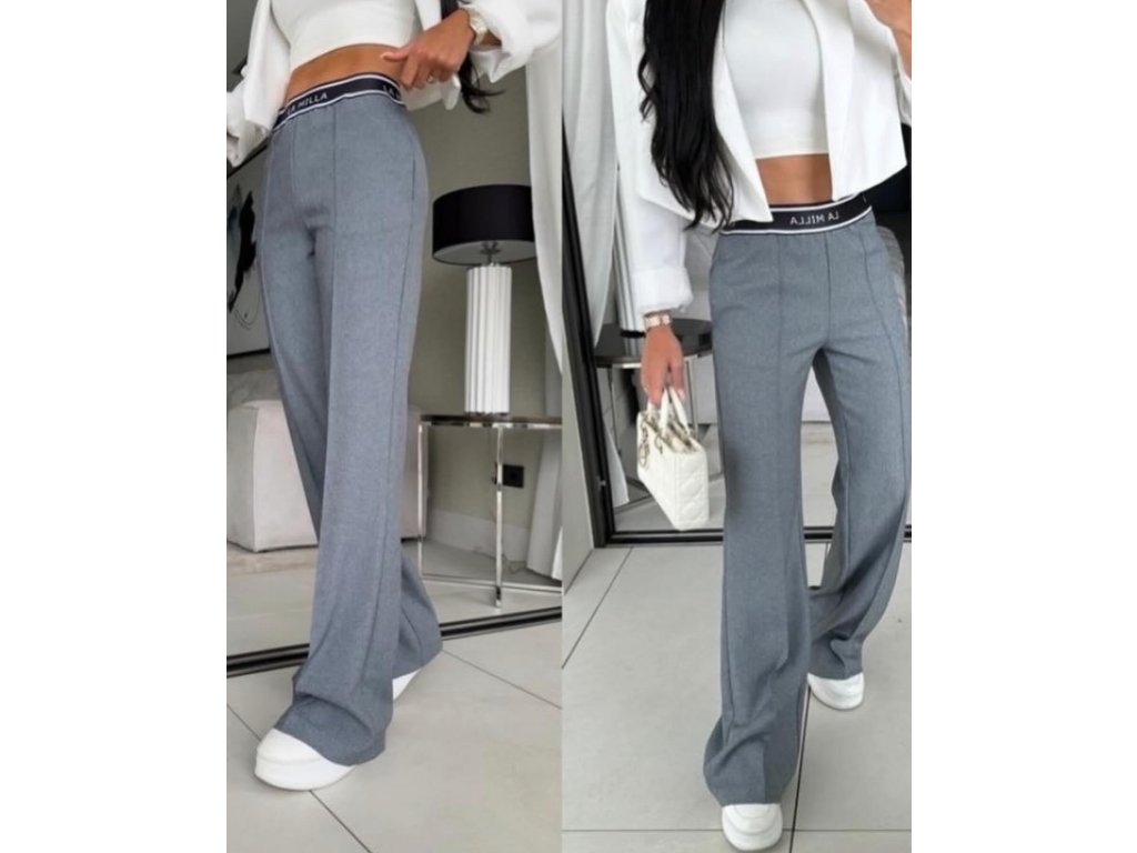 Model s vysokým pasem se vyznačuje širokými, ozdobnými nohavicemi.