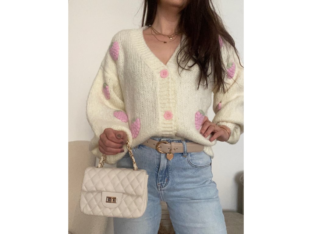Tento kardigan v vlnou v zimě opravdu zahřeje, Je heboučký a nepřehlédnutelný. Roztomilé nášivky a příjemný materiál si zamiluješ na první obléknuti.