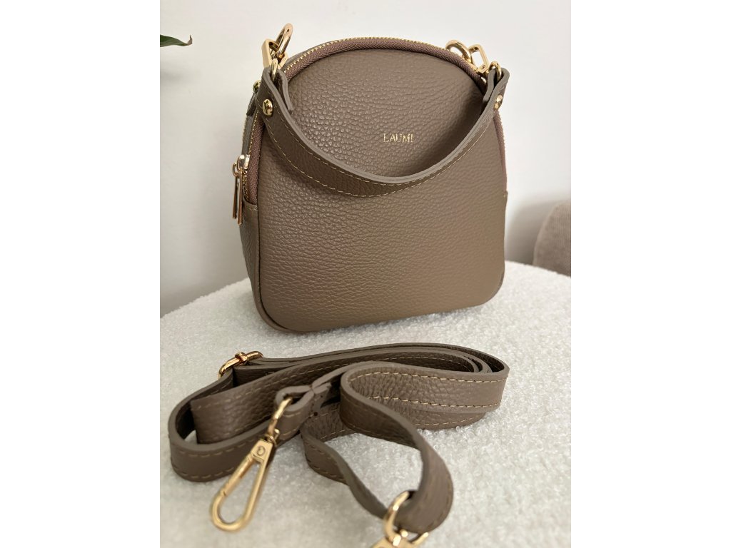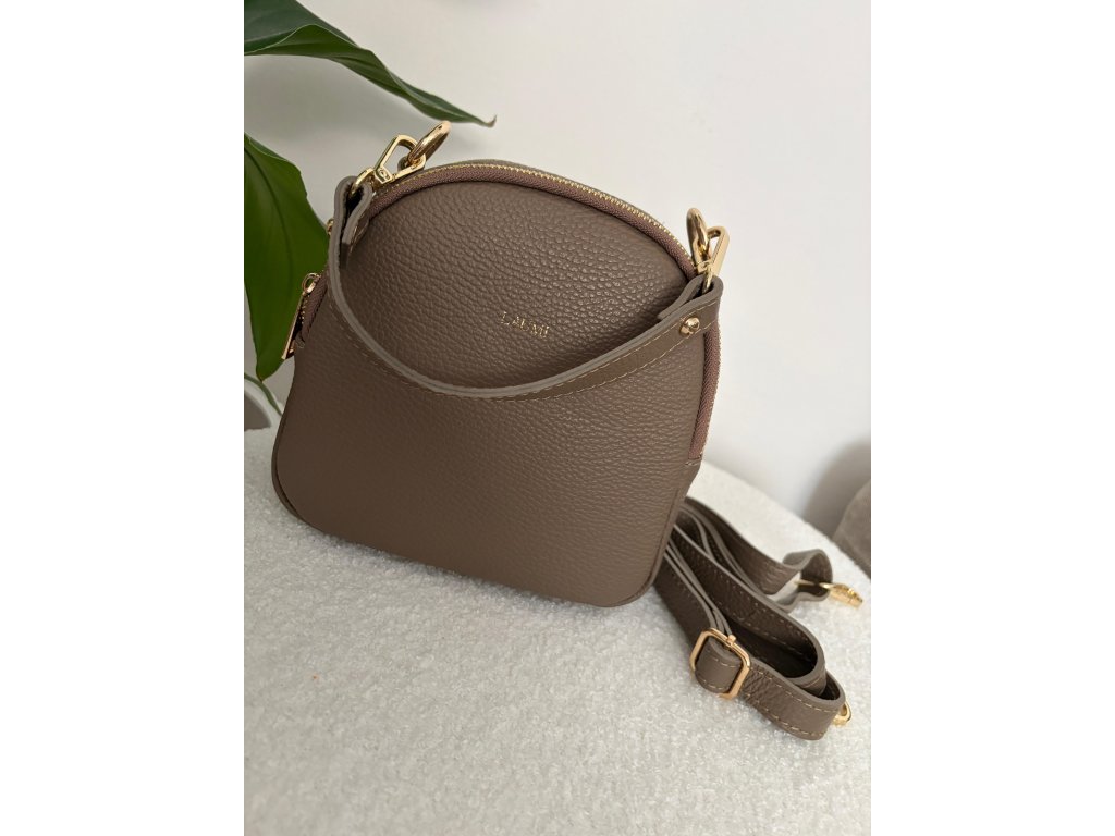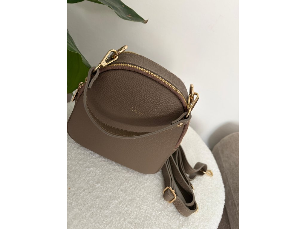 Elegantní kožená kabelka je menšího formátu, ideální na každý den i speciální příležitost. Oblý tvar kabelky doplňuje dvojité zipové zapínání a zlaté detaily, které dodávají nadčasový vzhled. Součástí kabelky je nastavitelný popruh, díky kterému ji lze nosit pohodlně přes rameno nebo crossbody. Je ideální na nezbytnosti, které chceš mít stále po ruce.