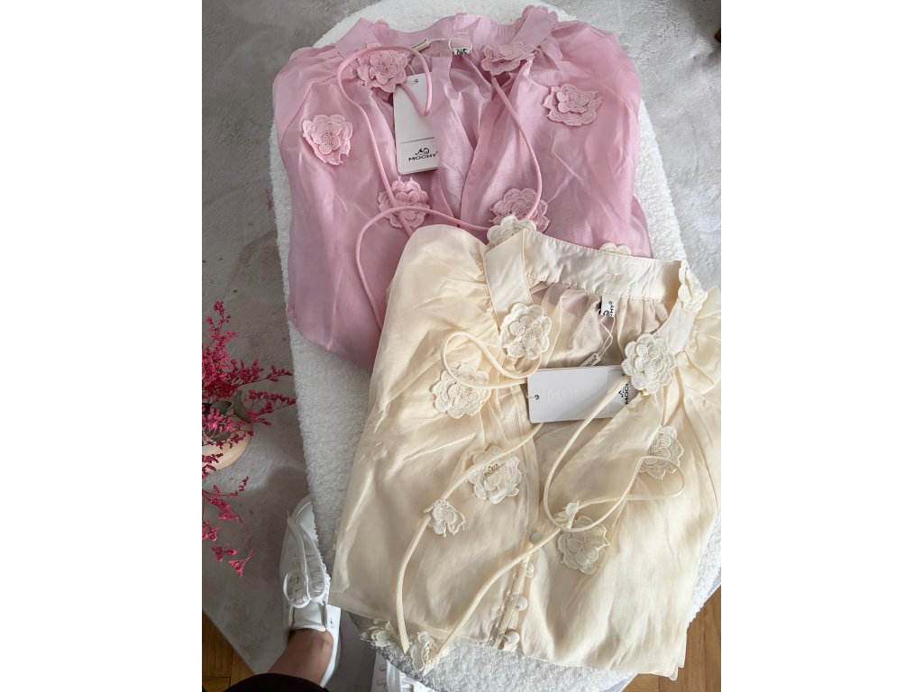 Hedvábná halenka s květinovou aplikací Mochy