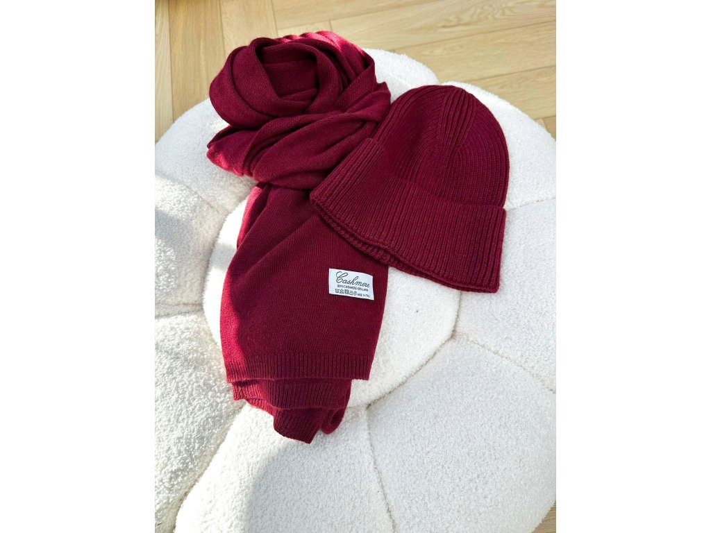 Luxusní kašmírový komplet Royal s čepicí a šálou Bordó