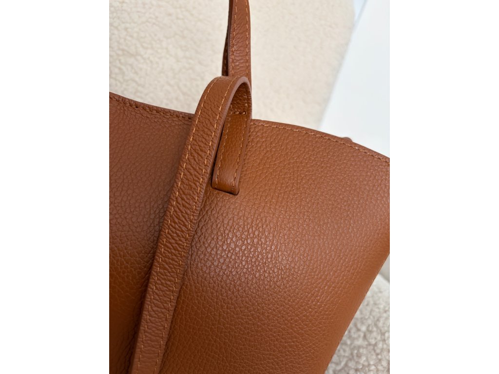 Kabelka je vybavena jak krátkými uchy do ruky, tak dlouhými popruhy – umožňujícími pohodlné nošení na rameni nebo přes rameno. Klasický tvar, nadčasový design a pečlivé zpracování zajišťují, že tento model skvěle doplní každý outfit.