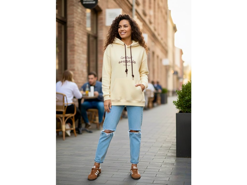 Stylová oversize mikina s čistým designem a nápisem Collect Adventures. Nezateplený materiál je lehký, příjemný a ideální na celoroční nošení – na vrstvení i samostatně. Volný střih zajišťuje maximální pohodlí a ležérní look, který snadno zkombinuješ s džínami, legínami i sukní.