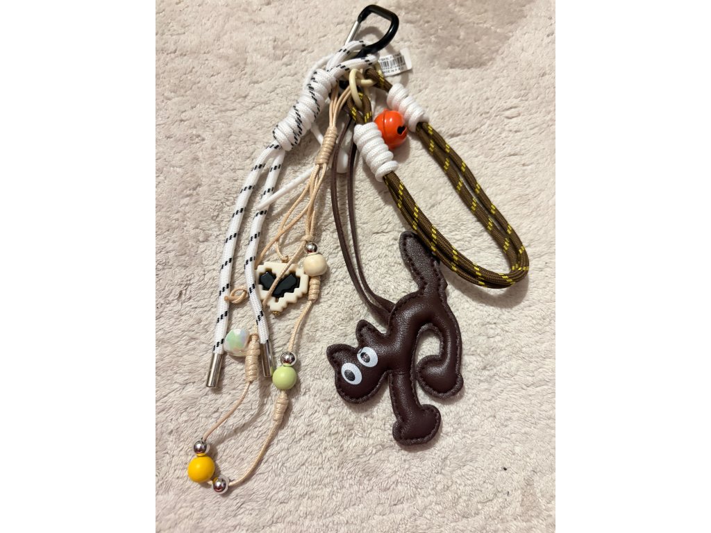 - kombinace šňůrek, pásků a dekorativního přívěsků ve tvaru kočky