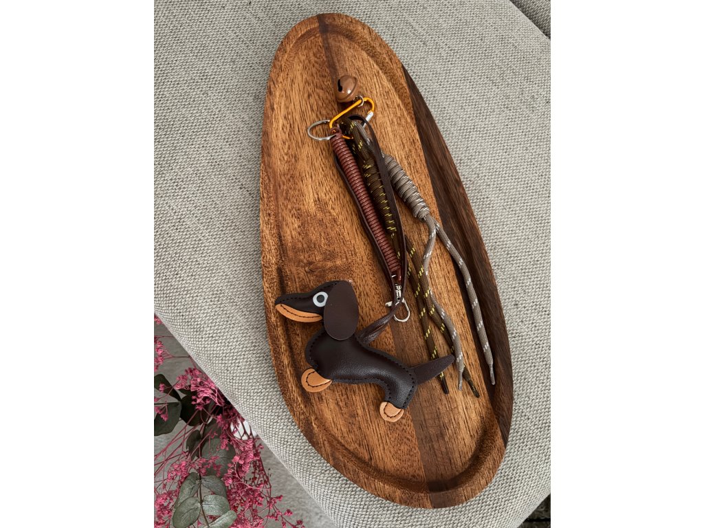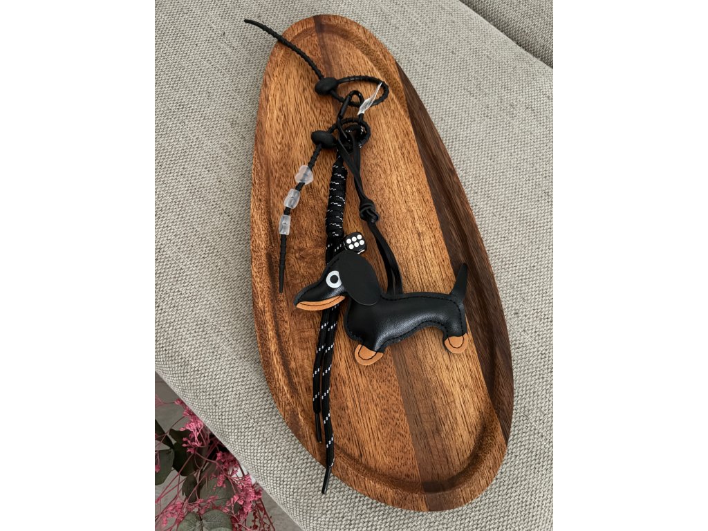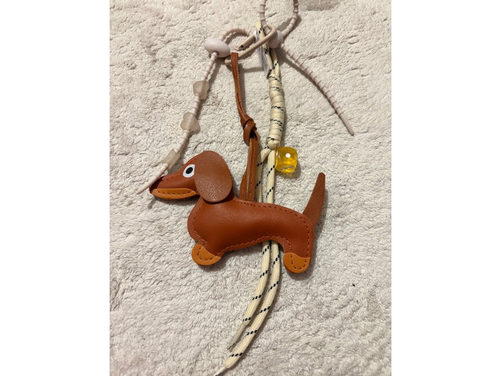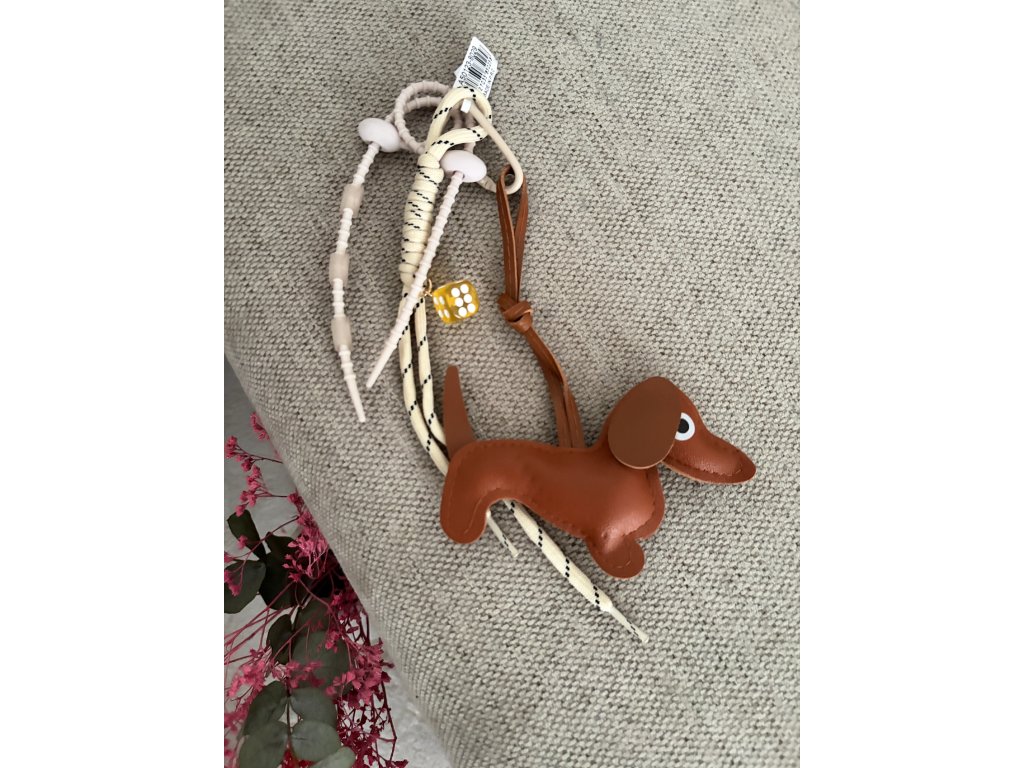 - kombinace šňůrek, pásků a dekorativního přívěsků ve tvaru psa