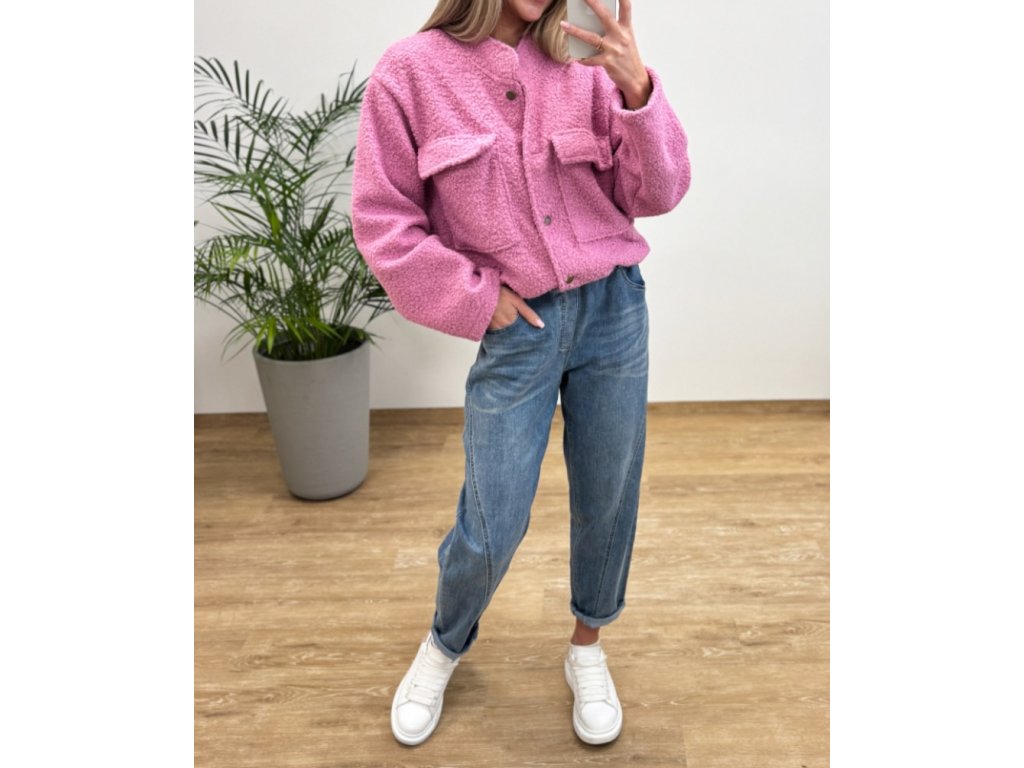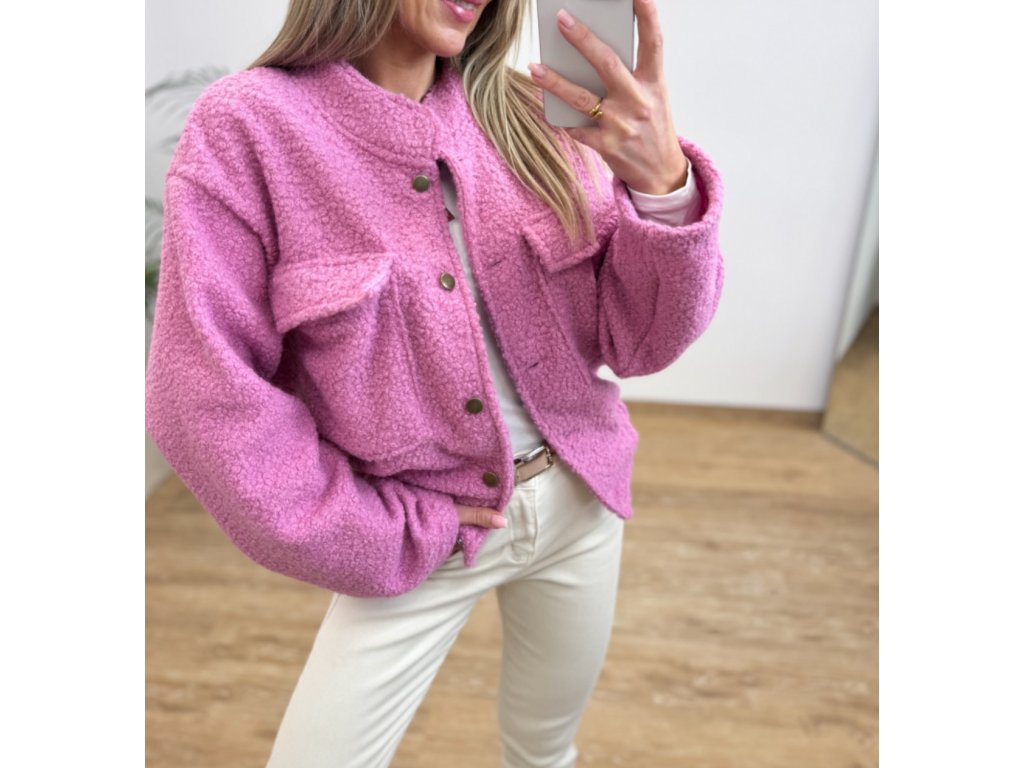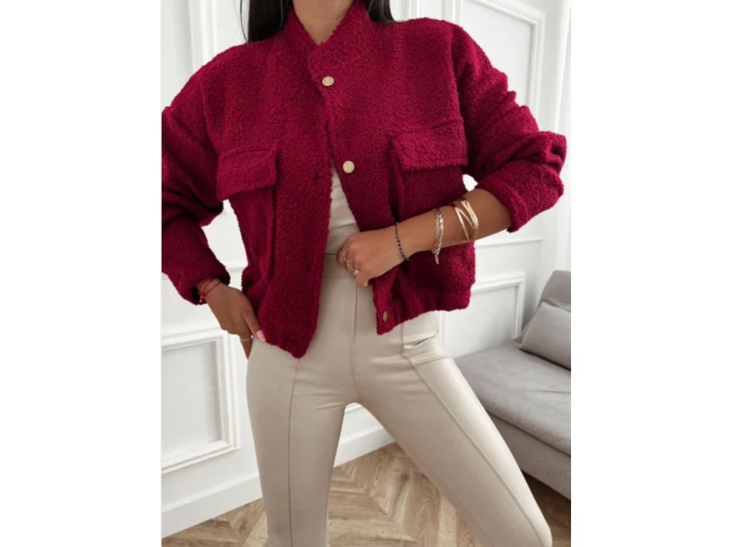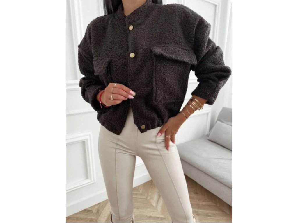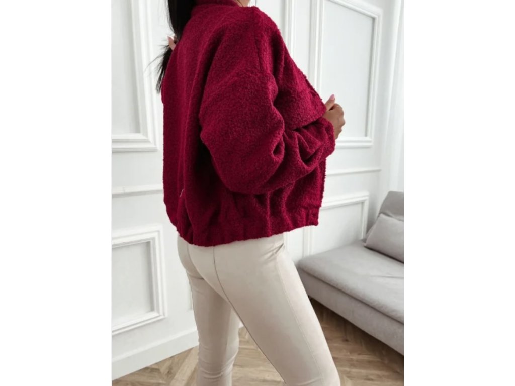 Měkká teddy bomborka z materiálu příjemného na dotek. Díky klasickému límci a zapínáni na druky se snadno styluje k džínům, šatům i teplákům.