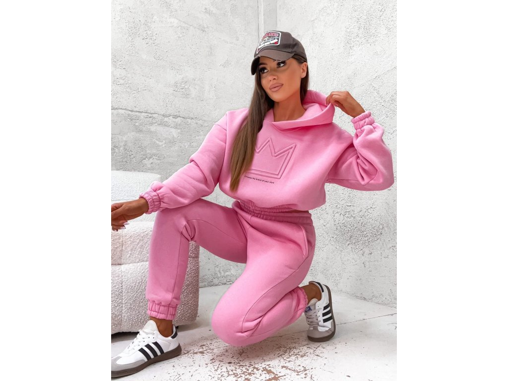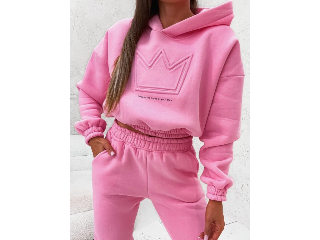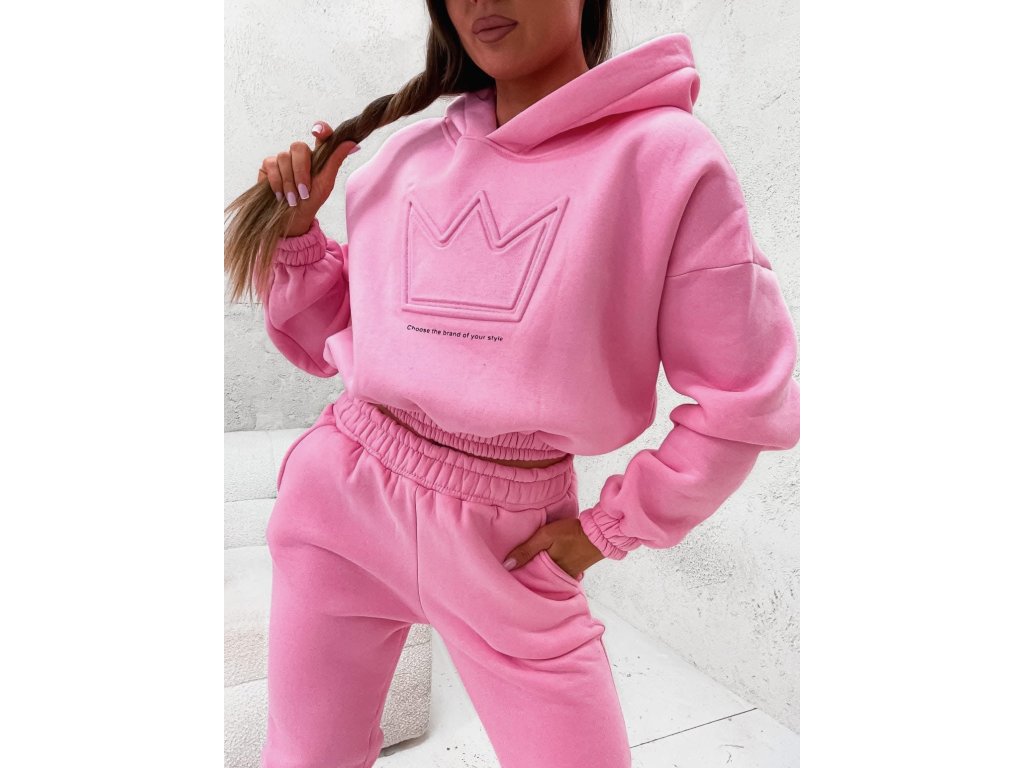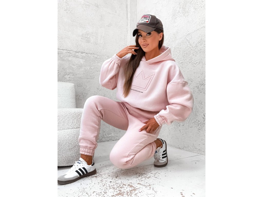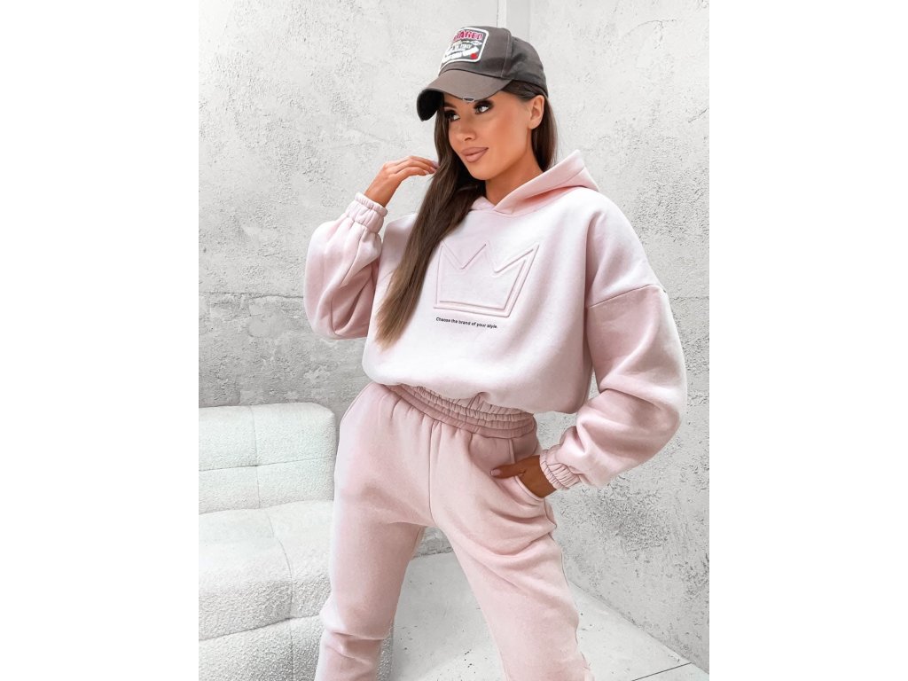 Mikina má kapuci, stahovací guma v pase jí dodává moderní look. Díky tomu mikina nejen skvěle vypadá, ale také dobře ladí na siluetě. Tepláky mají stahovací gumu v pase a na spodku nohavic, což jim dodává sportovní charakter, ale také to, že nohavice dobře sedí a při chůzi se nepodvírají.