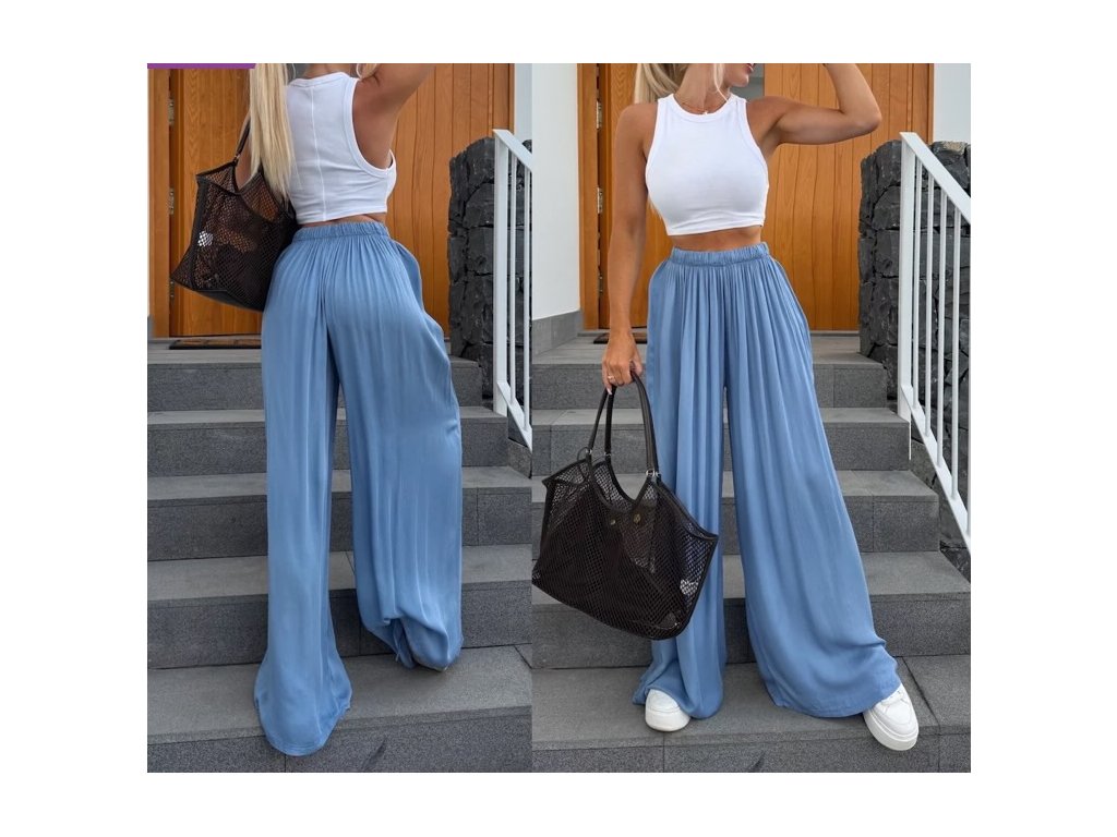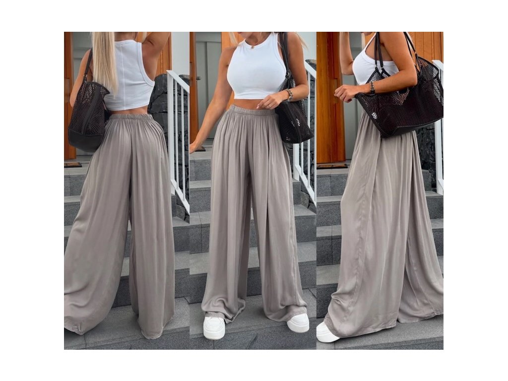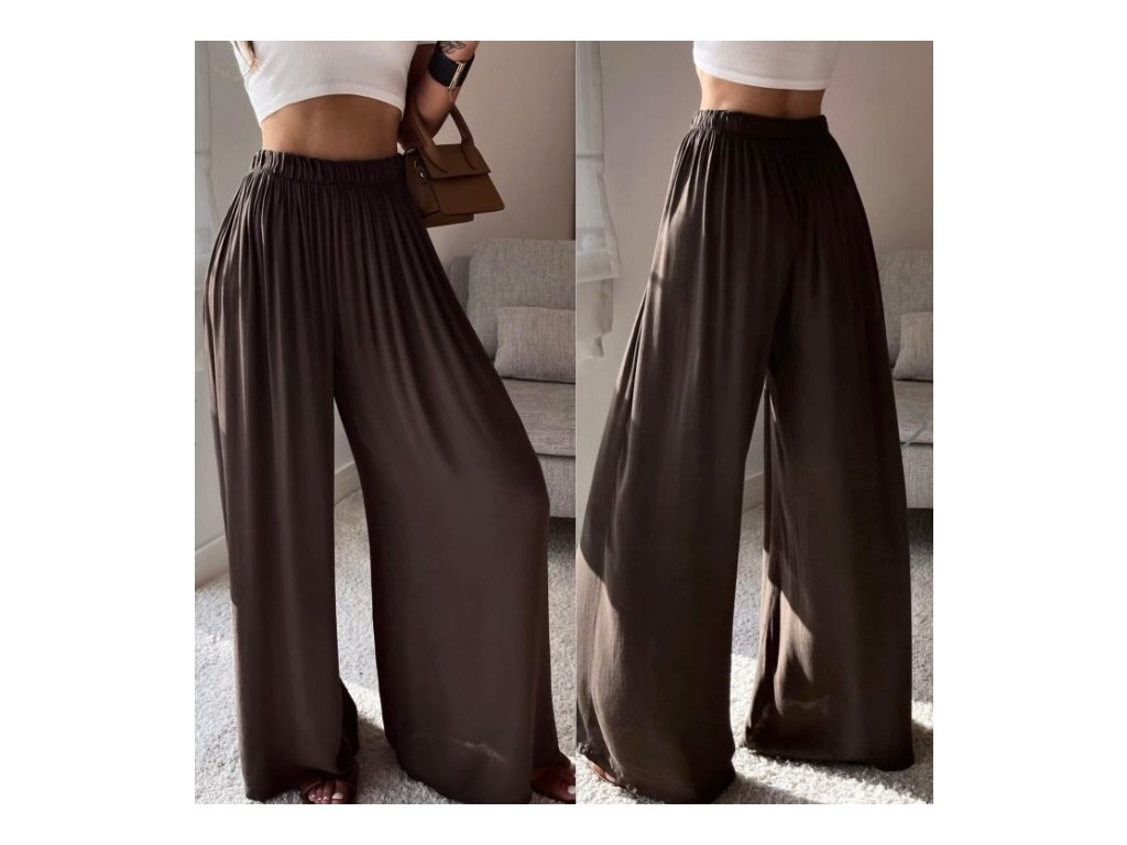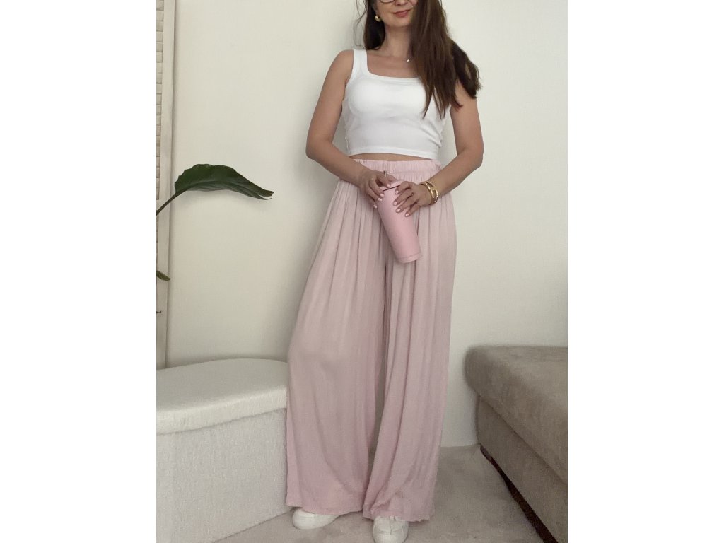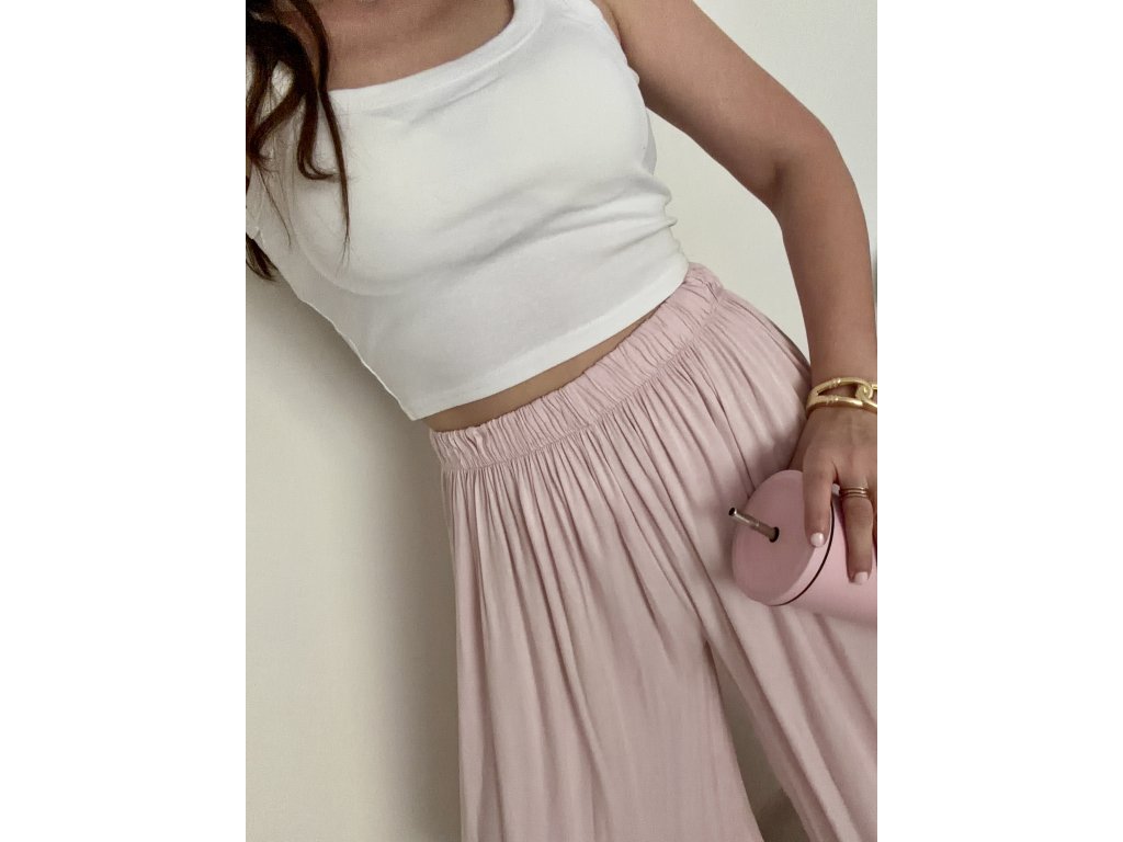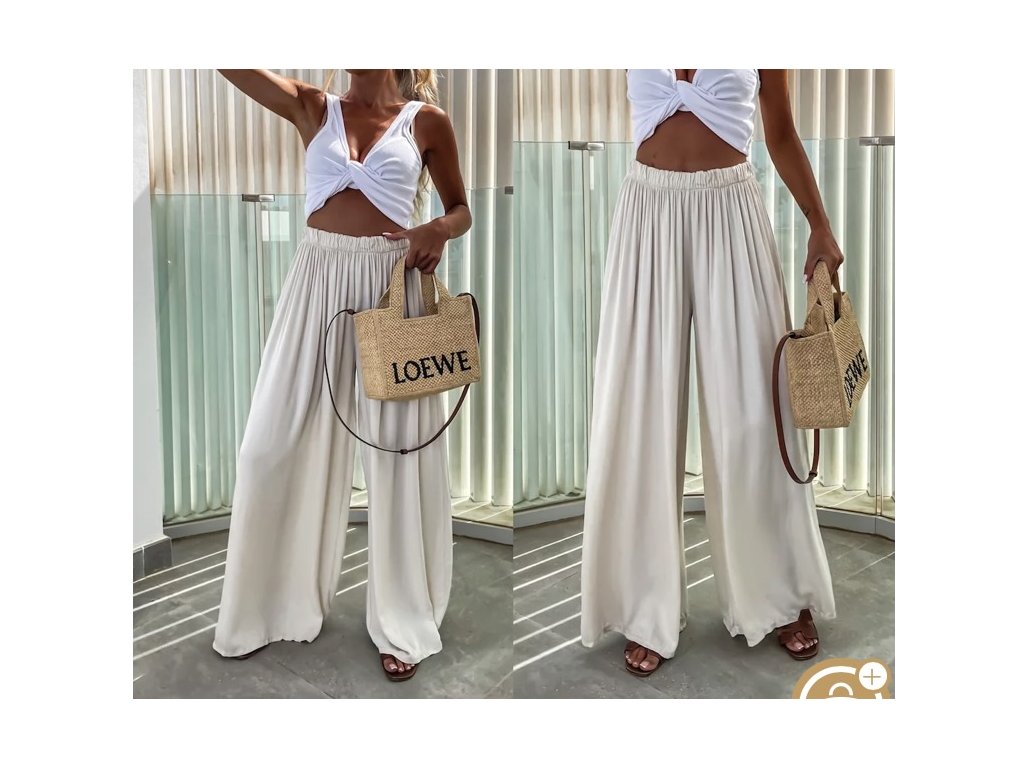Náš nejprodávanější kousek se širokou nohavicí. Díky gumičce v pase se nádherně přizpůsobí postavě. Nadčasový střih, který zkombinuješ s teniskami i pantoflemi, s tričkem, topem i košilí.