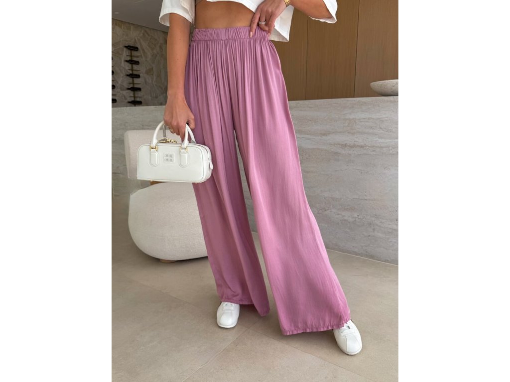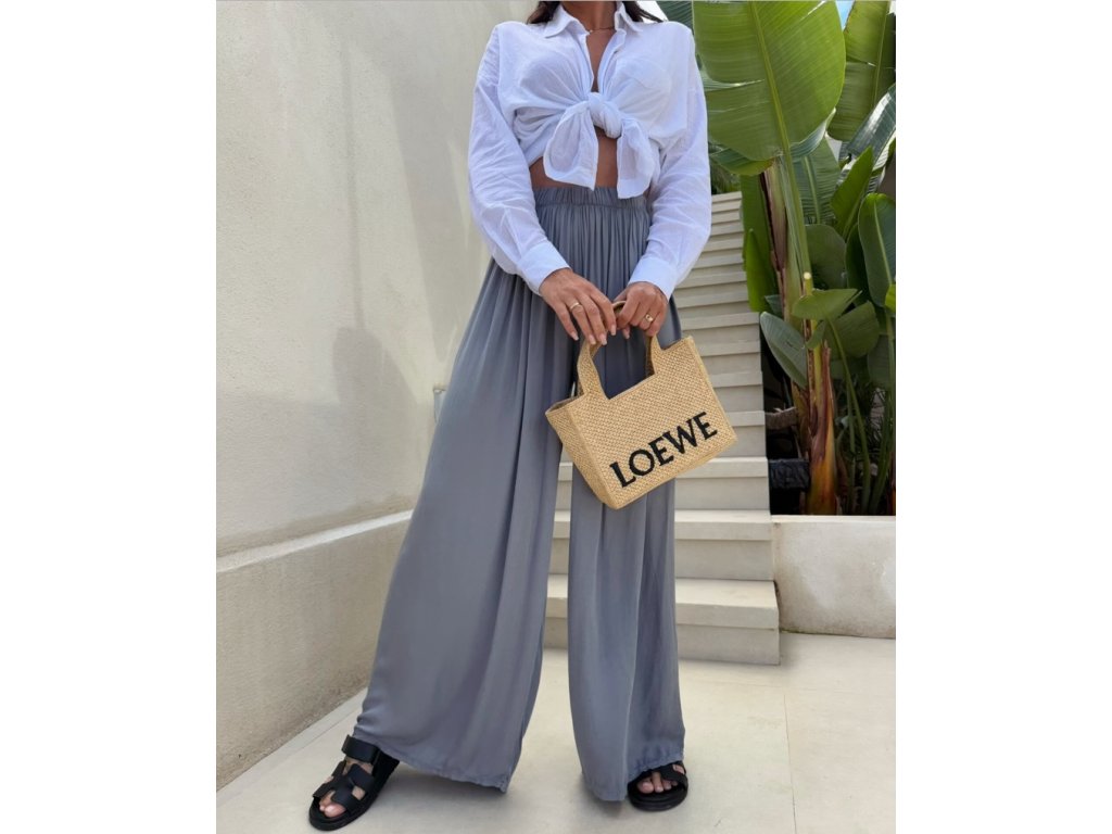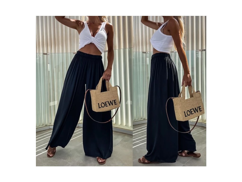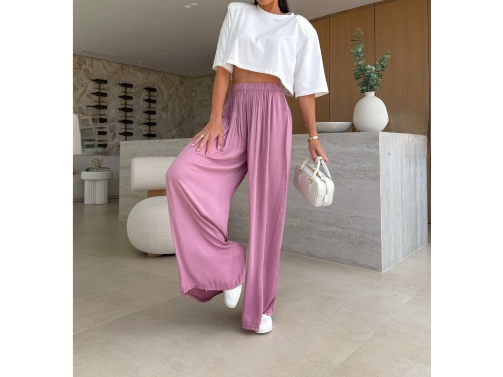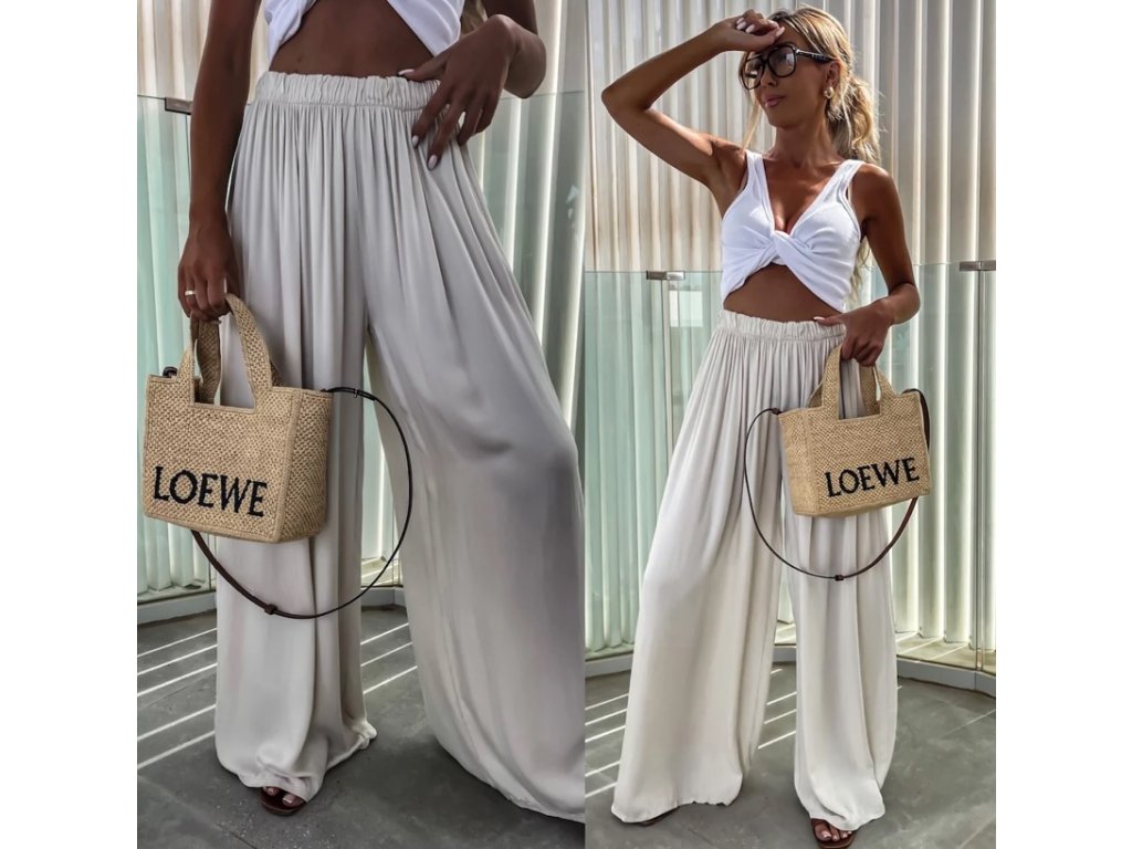 Náš nejprodávanější kousek se širokou nohavicí. Díky gumičce v pase se nádherně přizpůsobí postavě. Nadčasový střih, který zkombinuješ s teniskami i pantoflemi, s tričkem, topem i košilí.