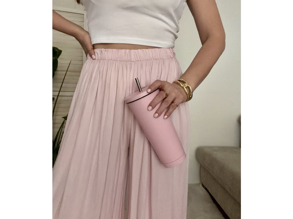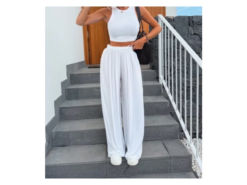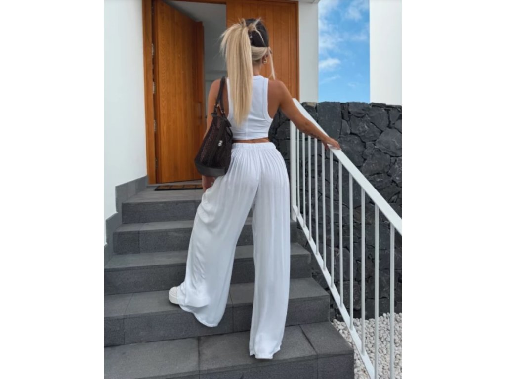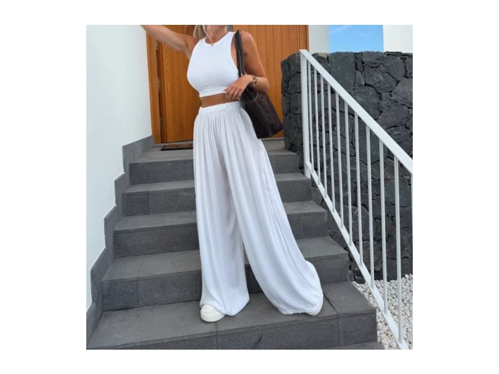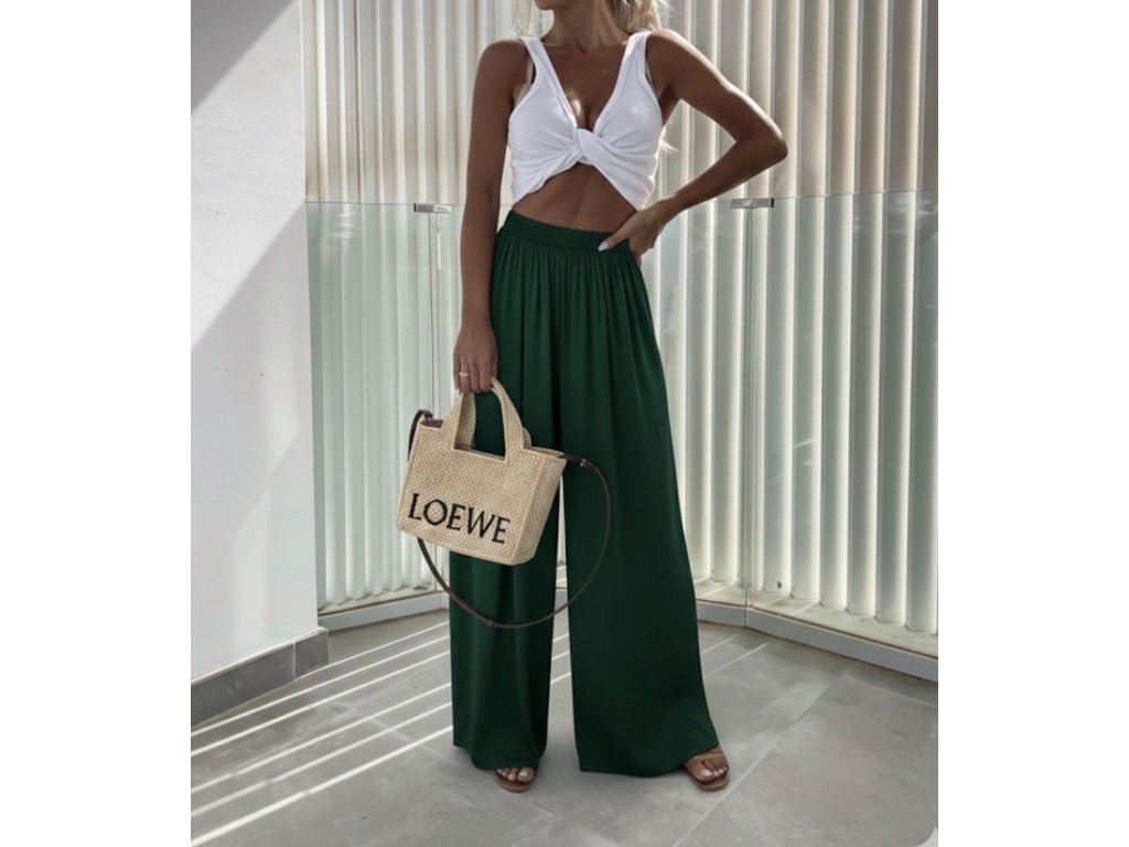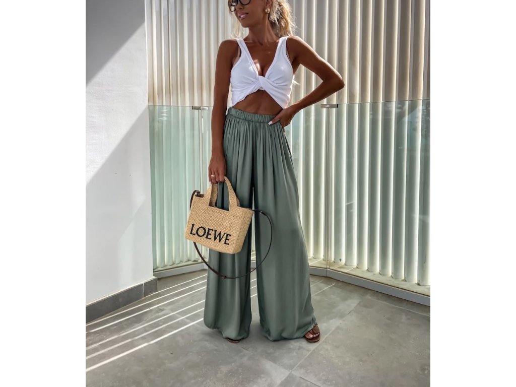 Náš nejprodávanější kousek se širokou nohavicí. Díky gumičce v pase se nádherně přizpůsobí postavě. Nadčasový střih, který zkombinuješ s teniskami i pantoflemi, s tričkem, topem i košilí.